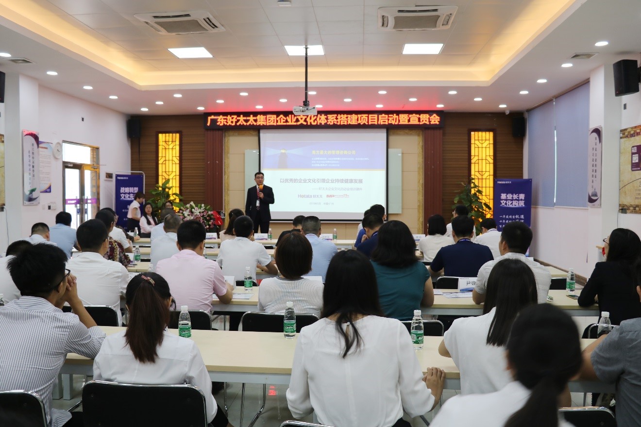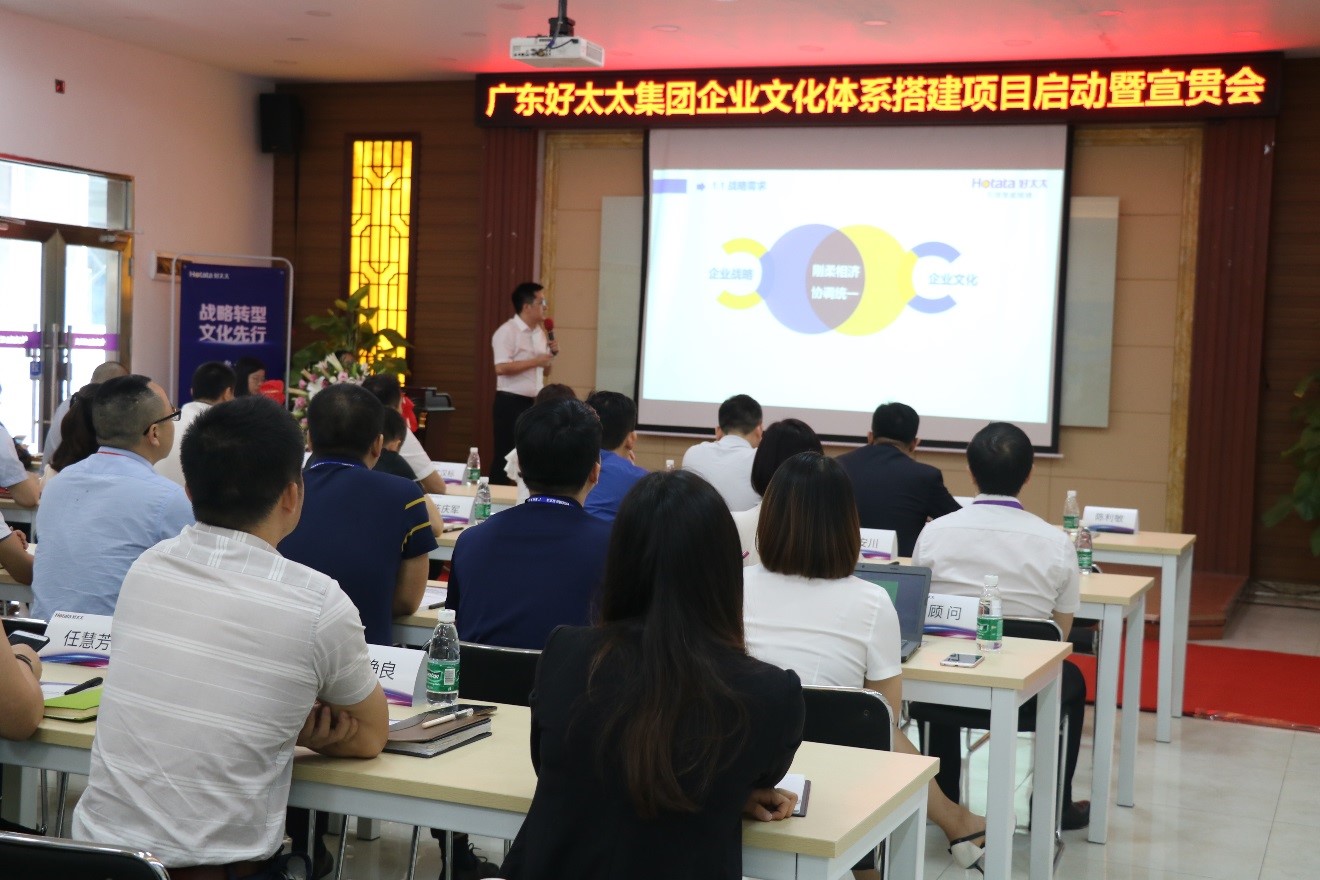 5月28日對于好太太來說是個特殊的日子,下午兩點由商學院主辦的企業文化體系搭建項目啟動會在好太太培訓室成功舉行。本次活動出席的嘉賓有集團董事長沈漢標、集團總裁兼商學院院長王妙玉、集團副總經理侯總、集團營銷總經理陳總、中大咨詢企業文化事業部總監蔡占明等。本次啟動會不僅希望大家對企業文化的價值和意義以及整體建設全過程有基本的認知和理解,對整個項目保持思想統一,高度重視;更希望在未來的體系搭建項目開展過程中,各部門能夠積極配合、全力支持,通過明確目標,各部門共同推動項目的順利完成,并激發大家的熱情及內心的責任感與使命感。