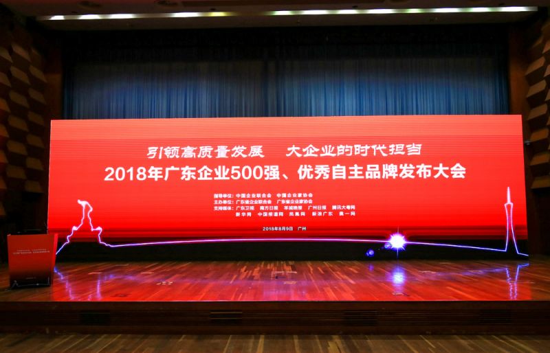 近日,由廣東省企業聯合會、廣東省企業家協會主辦的“2018年廣東企業500強、優秀自主品牌發布大會”在廣州舉行。本屆大會以“引領高質量發展,大企業的時代擔當”為主題。