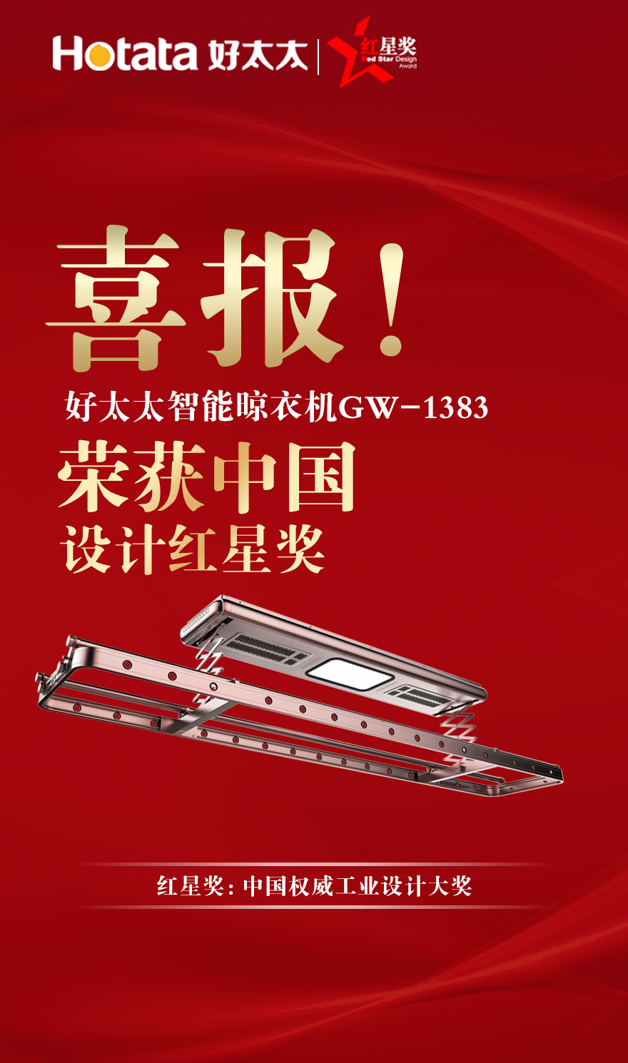 經過來自國內外眾多權威專家的四輪評審。好太太智能晾衣機GW-1383最終從幾萬個參評商品中脫穎而出,榮登「2018中國設計紅星獎」!