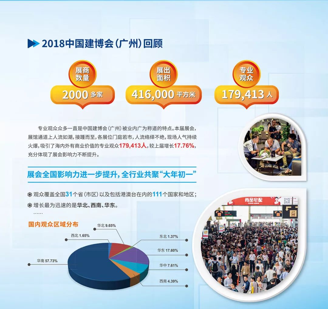據(jù)悉,此次中國建博會展覽面積超過40萬平方米,規(guī)模居全球同類展會之首,共設(shè)立40個展館,展商超過2100家,同期將舉辦逾40場高端會議論壇、行業(yè)活動,參觀人數(shù)近18萬人、超90萬人次,展區(qū)涵蓋大家居建裝行業(yè)全產(chǎn)業(yè)鏈。