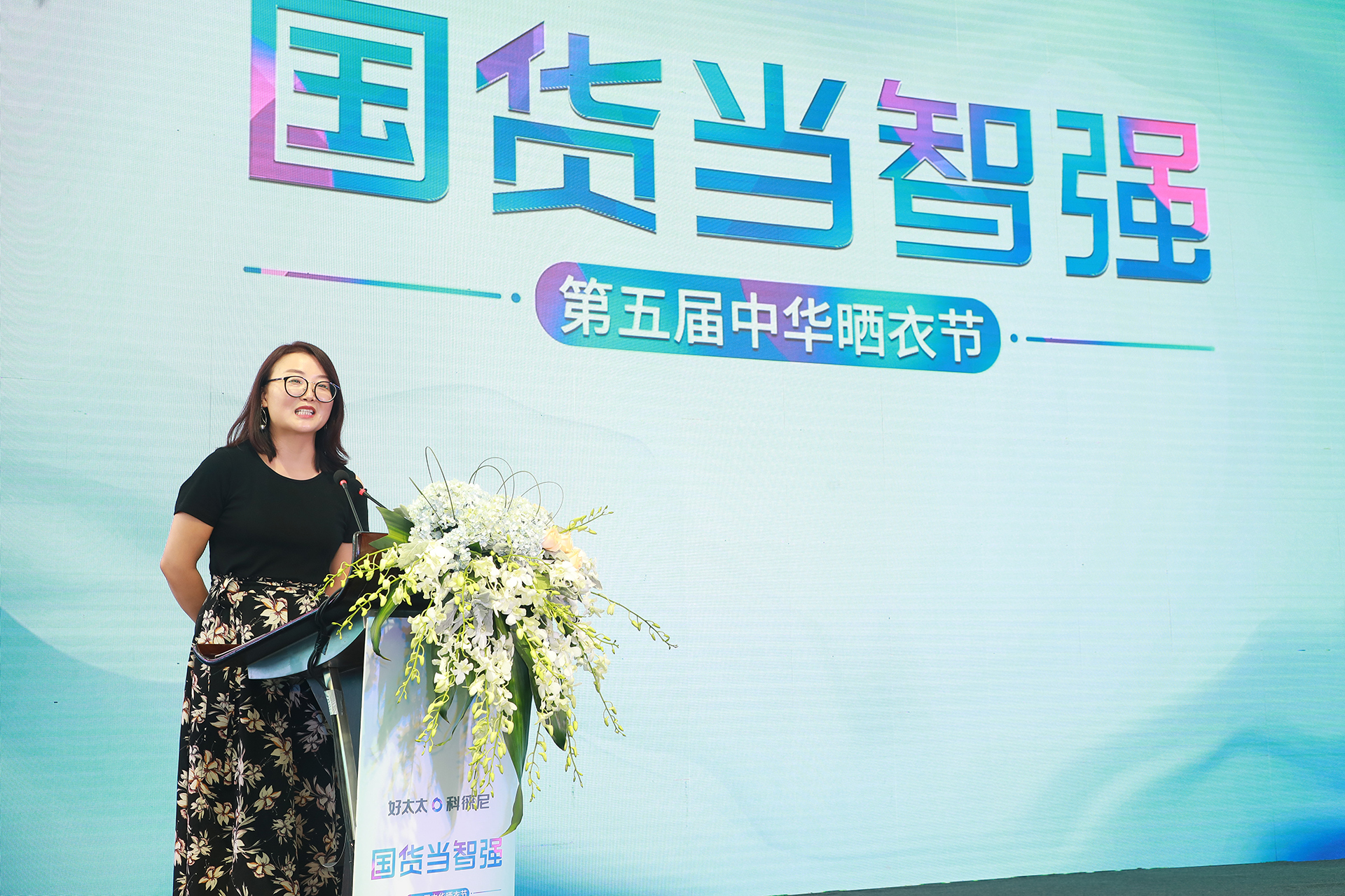 廣東好太太集團總裁王妙玉女士也登臺為第五屆中華曬衣節致辭。表明了好太太集團倡導文化自信,以智能家、趣生活為核心使命以強大的科技賦能創新晾曬新革命,為人們提供了輕松、快樂的生活方式。