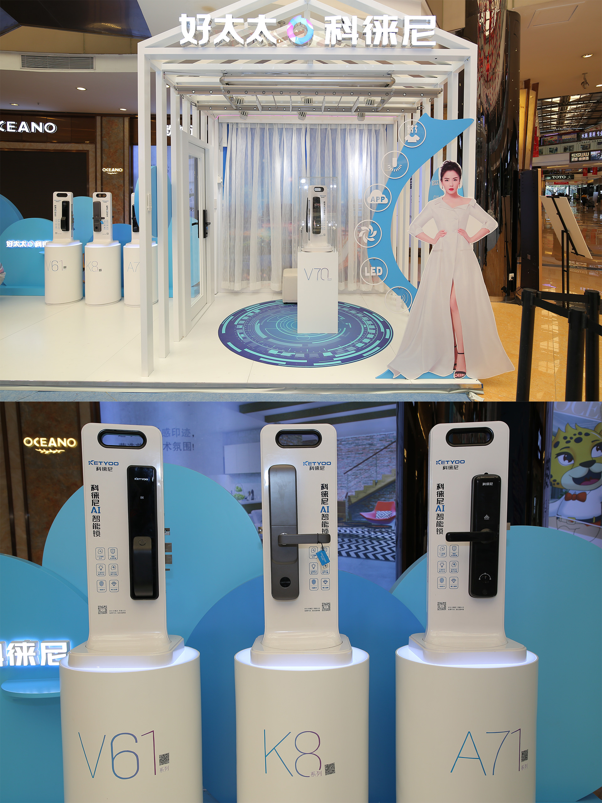 好太太的潮酷智能體驗店,藍白簡約配色,極具未來感,智能晾衣機、智能鎖、智能交互通通可進行體驗,專人進行講解,科技感滿滿。