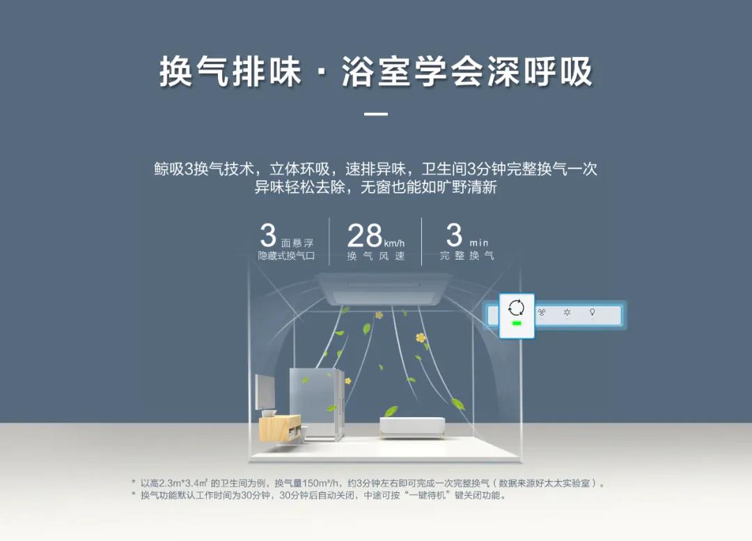 巨靈神三防電機,防水防潮防腐蝕;鯨吸3換氣技術,衛生間無窗也能時刻清新;還有集美照明系統,三大核心優勢,令大家又多了一個理由選擇好太太智能浴霸!