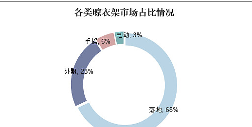 晾衣架一般可分為落地、外飄、手搖和電動四種。其中落地式晾衣架是目前最主要的產品,其市場份額占比近七成。主要是由于落地式晾衣架占地面積較小,便于移動和折疊,價位不高,而且通常與其他類型晾衣架搭配使用,所以落地式晾衣架深受大眾喜歡。