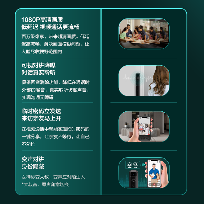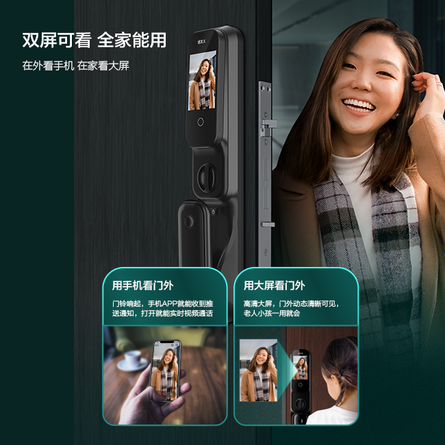 搭載4寸IPS高清室內(nèi)彩屏,高清鋼化玻璃表面貼合,畫質(zhì)清晰更防刮蹭。平時也可通過按鍵主動喚醒查看,從此不再擔(dān)心孩子給陌生人開門。
